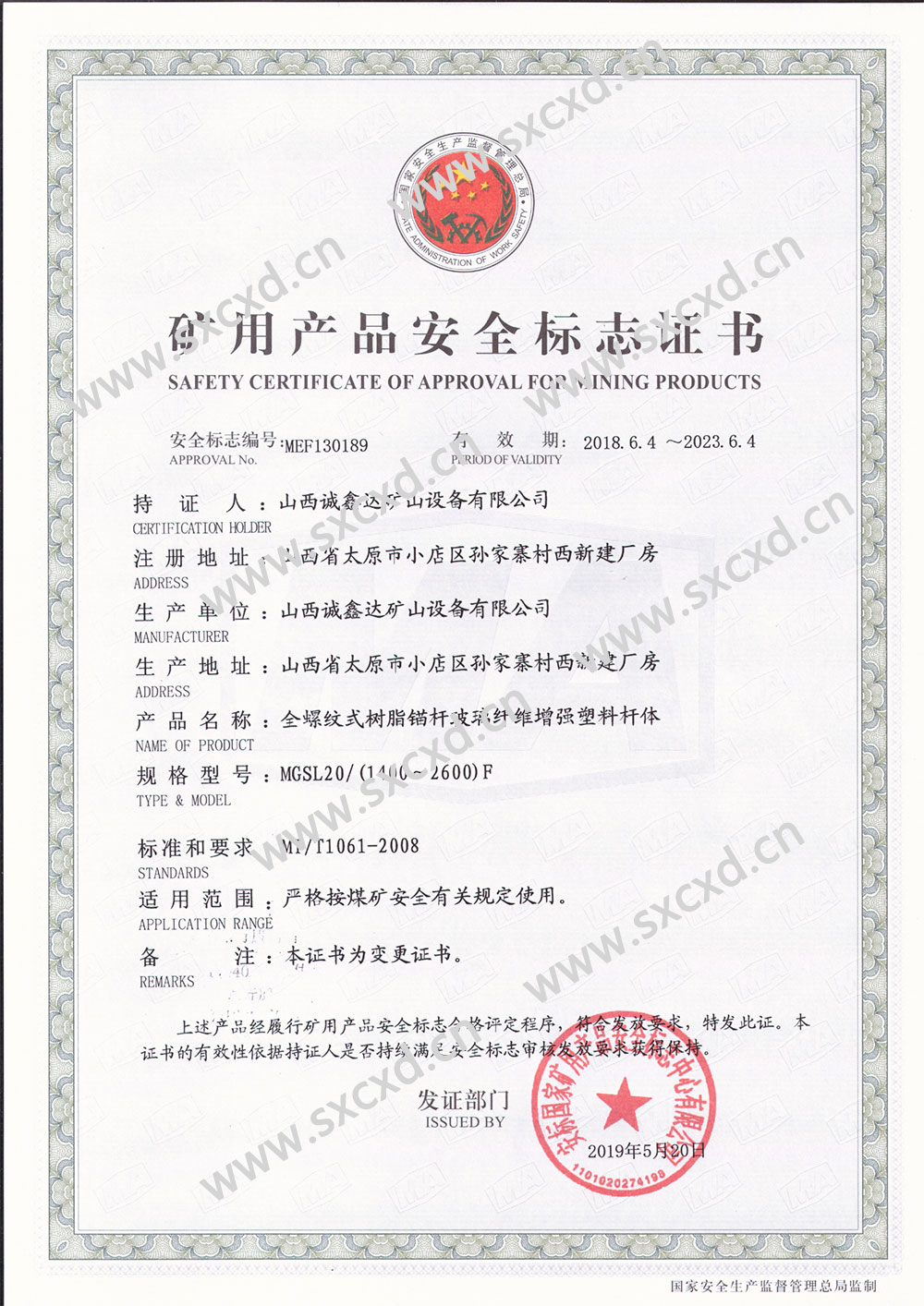 20錨桿安標(biāo)證書