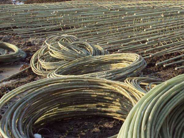 玻璃纖維樹脂筋材的基材包括不飽和聚酯樹脂、乙烯基酯樹脂、環(huán)氧樹脂、聚酰胺樹脂等等,玻璃纖維樹脂筋材的全稱為玻璃纖維增強(qiáng)復(fù)合材料筋,是由高性能的含堿量小于0.8%的無堿玻璃纖維無捻粗紗或者高強(qiáng)玻璃纖維無捻粗紗和樹脂基體、固化劑,采用成型固化工藝復(fù)合而成表面形狀為全螺紋式的桿體。玻璃纖維樹脂筋材因其自身特性突出,已經(jīng)被廣泛應(yīng)用于地鐵地下連續(xù)墻、公路鐵路護(hù)基、建筑防護(hù)等領(lǐng)域。