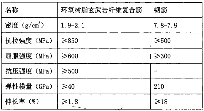 1. 密度:纖維復(fù)合筋的密度范圍在1.9-2.1g/cm3之間,只有鋼筋的1/4。