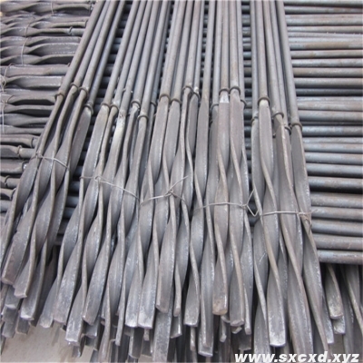 麻花錨桿分為兩種,一種是螺紋鋼麻花錨桿,就是在錨桿鋼的頭部擰一部分麻花,比普通麻花錨桿預緊力大,另一種是利用各種規(guī)格的圓鋼做成的,在圓鋼頭部做一段麻花。