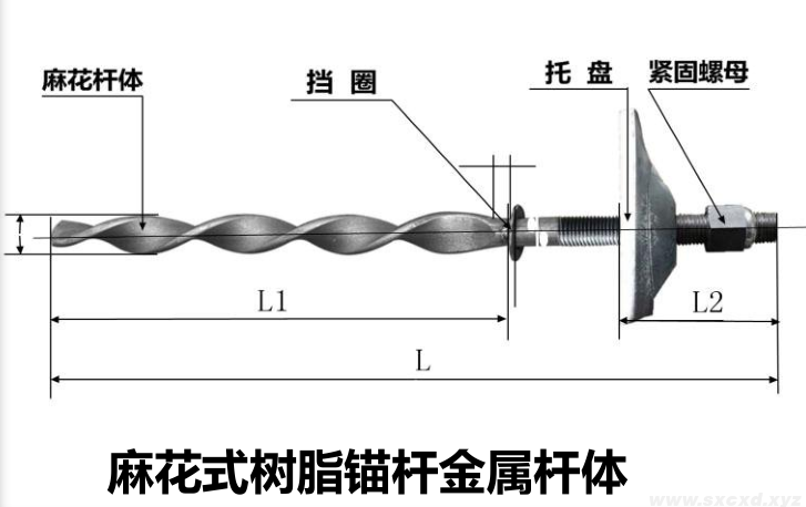 麻花式樹脂錨桿金屬桿體選用屈服強度不小于 235MPa 的普通熱軋圓鋼,也可選用屈服強度不小于 335MPa 的螺紋鋼筋。